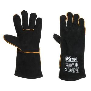 Ці чорні замшеві рукавички з манжетом крага розміру 11 є ідеальним вибором для захисту рук в холодну погоду. Виготовлені з якісного замшевого матеріалу, вони дуже м'які і зручні у використанні. Манжет крага допомагає утримувати рукавички на місці і запобігає проникненню холодного повітря. Чорний колір додає рукавичкам стильний вигляд і дозволяє їм підходити до будь-якого одягу. Ці рукавички ідеально підходять для захисту рук взимку або просто для комфорту і стилю в будь-який час року.