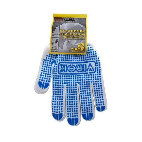 Основні переваги рукавиць трикотажних VIROK білі з ПВХ крапкою:- Висока міцність трикотажного матеріалу і ПВХ покриття забезпечують довгий термін служби рукавичок- Зручний фіксуючий манжет дозволяє підібрати рукавиці посиланням до руки- ПВХ крапкою на покритті рукавиць забезпечує відмінну маніпуляцію предметами та збереження чутливості- Рукавиці розміру 10 підходять для середнього розміру дорослого чоловіка