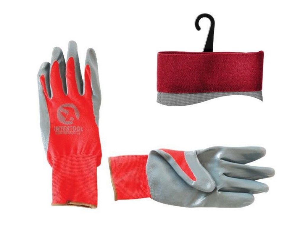 Ця трикотажна рукавичка забезпечує надійний захист рук. Вона виготовлена з синтетичного матеріалу і має яскравий сіро-червоний колір. Долоня рукавички покрита сірим нітрилом, що забезпечує додатковий захист та забезпечує міцний зчеплення з поверхнею. Рукавичка має довжину 10 дюймів, що забезпечує комфортну посадку і зручне використання.