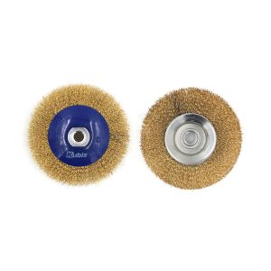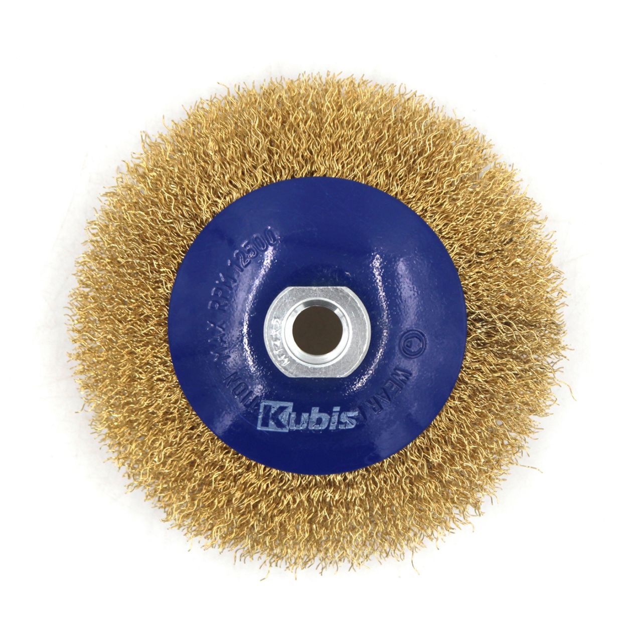 Щітка-крацовка конічна для УШМ 125 мм, рифлена латуньована ідеально підходить для використання в будівництві, ремонті та реставрації. Вона ефективно очищає металеві поверхні від ржавчини, фарби і налітів. Ця щітка також може бути використана в промислових галузях, де необхідно швидко і якісно очищати металеві поверхні.