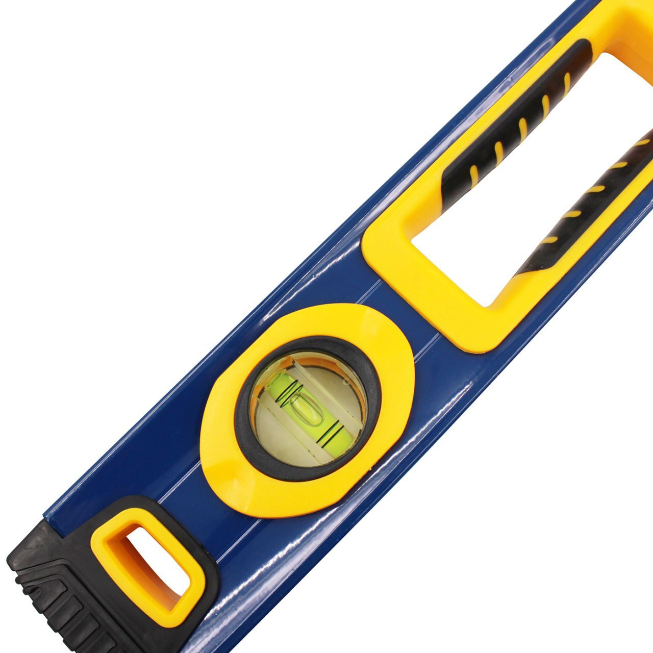 Рівень з ручками 1000 мм відмінної якості. Його точність становить 0,5 мм на метр, що забезпечує точне вимірювання. Капсула рівня регулюється на 360 градусів, що дозволяє використовувати його в різних положеннях. Упори мають протиковзкі властивості, що забезпечує стабільність під час роботи. В комплекті є 3 вимірювальні капсули. Використовується для точного вимірювання рівності поверхонь.