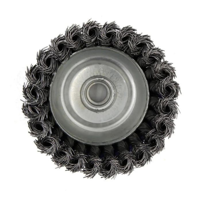 Ця щітка може використовуватися для різних видів робіт, таких як обробка поверхні, зняття фарби, видалення ржавчини, чищення металу. Вона ефективно працює з УШМ діаметром 75 мм і допомагає досягнути високої якості обробки.