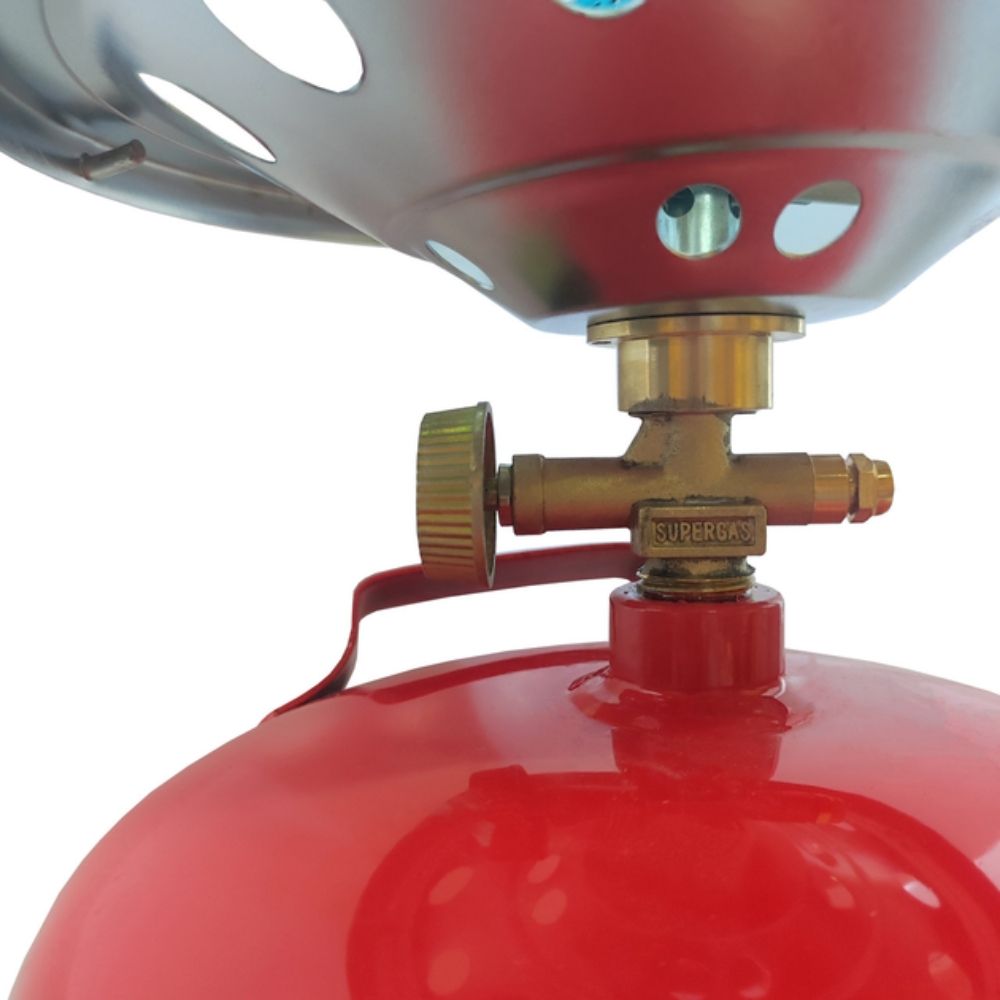 Модель оснащена знімною конфоркою з розсікачем та зручною нікельованою ручкою для перенесення. Балон можна заправляти на будь-якій газовій автозаправці, що робить його універсальним та практичним у використанні. При середньому навантаженні він забезпечує стабільну роботу пальника протягом тривалого часу, при цьому витрати на годину роботи у 10–15 разів нижчі, ніж у балонів із цанговим або нарізним з’єднанням.