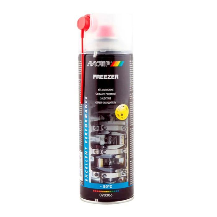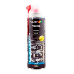 Заморожувач аерозольний Motip Freezer -50°C, 500 мл (код: 090306BS) — спеціалізований засіб, що миттєво охолоджує поверхню до -50°C, полегшуючи роз'єднання закислих або прикипілих кріплень. Ідеально підходить для гвинтів, гайок, болтів. Крім охолодження, засіб також змащує та захищає від корозії. Має приємний аромат ванілі.