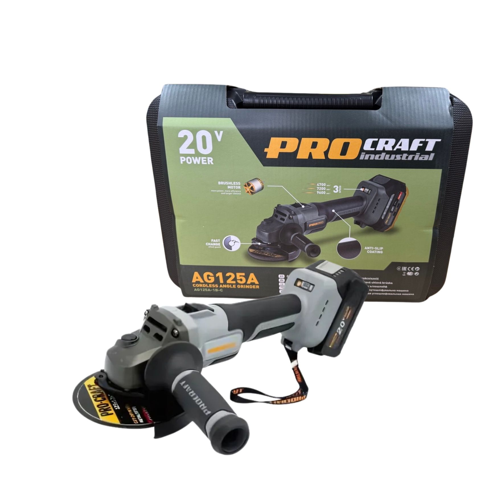 Акумуляторна болгарка Procraft industrial AG125A Кейс (1 акб та зп)