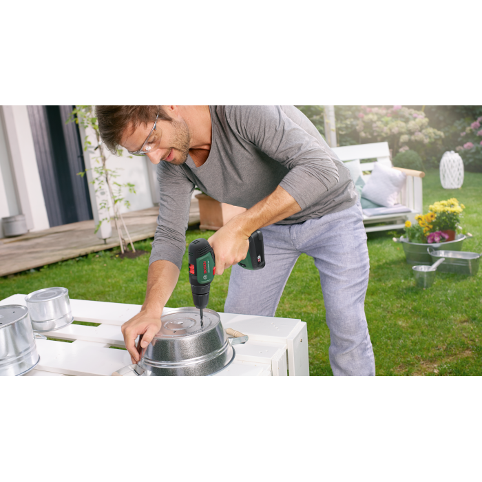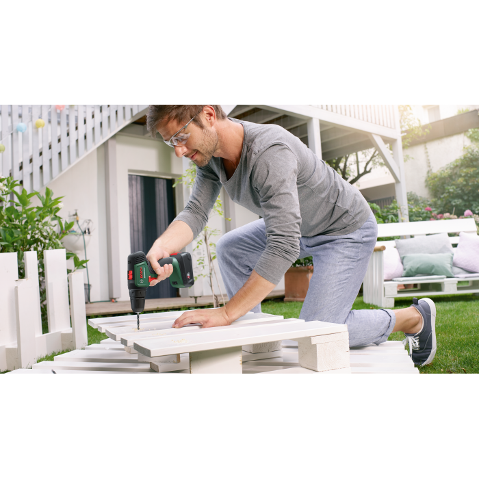 Дриль-шуруповерт Bosch UniversalDrill 18V (2х18 В, 1.5 А*год) (06039D4002) також має інші унікальні властивості та переваги:- Безшумна робота, що дозволяє використовувати інструмент в будь-який час дня без шкоди для вашого слуху.- Можливість заряджати акумулятор протягом короткого часу.- Чіп-протектор, що захищає аккумулятор від перевантаження та перегріву.- Комплектація: дриль-шуруповерт, два акумулятора 18V, зарядний пристрій, кейс для зберігання та транспортування.
