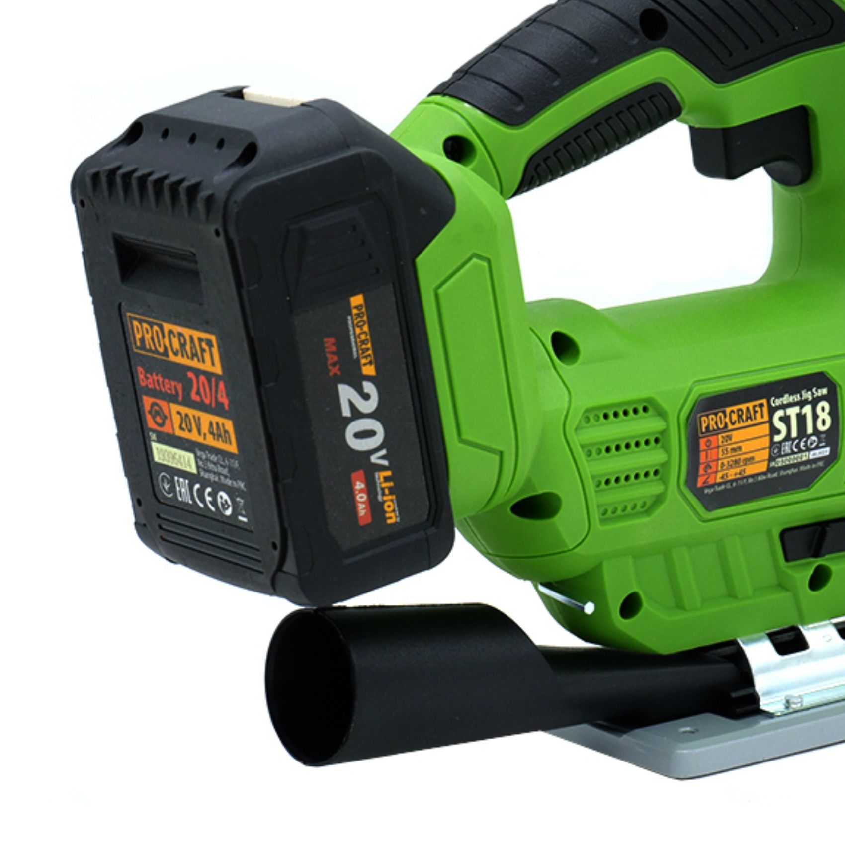 Основні переваги акумуляторного лобзика Procraft ST18: висока точність різання з похилим розрізом; швидкість холостого ходу для швидкого та якісного різання; ергономічне руків'я для комфортної роботи; глибока глибина різання дерева; легкий та компактний дизайн.