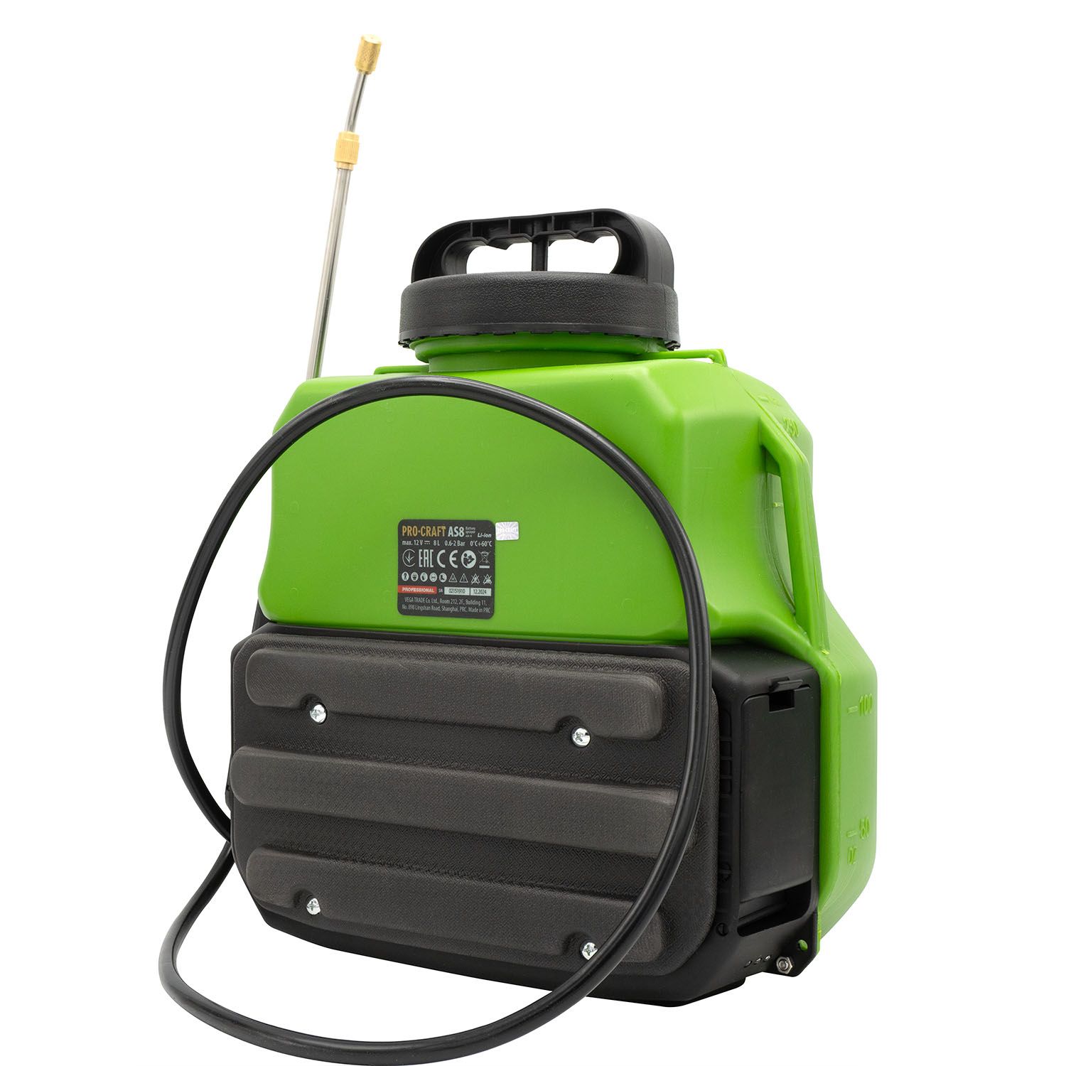 Обприскувач акумуляторний Proсraft AS8 зручний у використанні та має вигляд ранця, який кріпиться на спині, а вага всього бачка рівномірно розподіляється по всій спині та на плечі за допомогою ергономічного ременя. У комплекті з пристроєм поставляється три знімні розпилювальні сопла та телескопічна трубка з нержавіючої сталі.