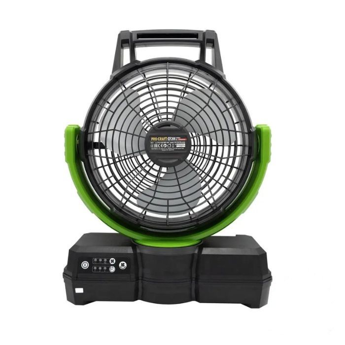 Акумуляторний вентилятор Procraft CF20 — це компактний і потужний пристрій, створений для забезпечення ефективного охолодження в побутових, робочих або мобільних умовах. Оснащений безщітковим двигуном, який забезпечує тривалу експлуатацію без зносу, вентилятор має три режими швидкості обертання та повітряного потоку. Працює від 20 В акумулятора (у комплект не входить).