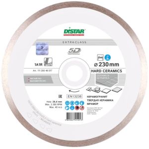 Даний алмазний відрізний диск Distar Hard Ceramics призначений для професійного використання під час обробки кераміки та інших твердих матеріалів. Відрізний диск має діаметр 230 мм, товщину 1.6 мм і отвір 25.4 мм. Виріб відмінно справляється зі своєю функцією завдяки високоякісному алмазному покриттю і відмінною міцністю.