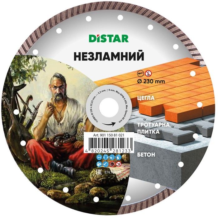 Алмазний відрізний диск Distar Turbo - це інструмент високої якості для швидкого та точного різання каменю, бетону, цегли, кераміки та інших будівельних матеріалів. Даний диск має діаметр 230 мм, товщину 2,3 мм та посадковий отвір 22,23 мм. Виготовлений зі спеціального абразивного матеріалу, що забезпечує тривалий термін служби та високу продуктивність. Ідеально підходить для професійного використання в будівельній сфері.