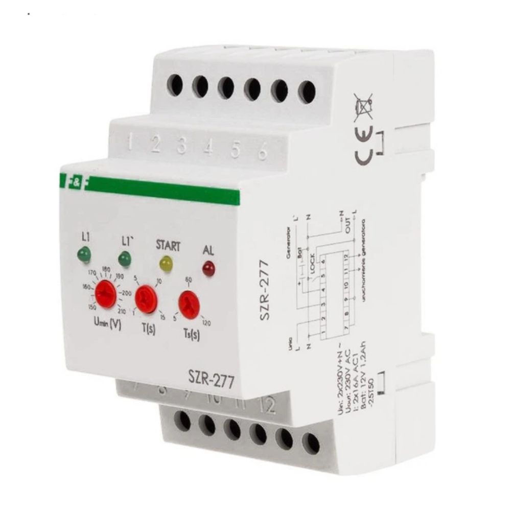 Пристрій автоматичного вводу резерву F&F SZR-277 3НВ забезпечує автоматичне перемикання навантаження між двома незалежними джерелами живлення: основною мережею 230 В та резервним однофазним генератором. Модель підходить для побутових та промислових систем і гарантує безперебійне живлення обладнання завдяки надійній електромеханічній схемі перемикання.
