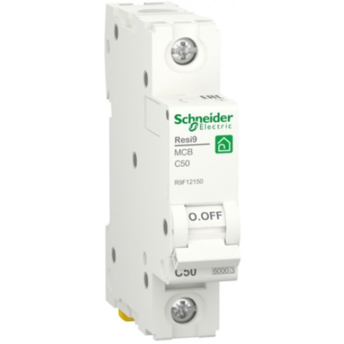 Автоматичний вимикач Schneider Electric Resi9 1P 50A, 6kA, тип C (код: 4.2.158486) — високоякісний захисний пристрій для електричних мереж. Призначений для запобігання перевантаженням та коротким замиканням, особливо у випадках великого навантаження побутовими чи промисловими приладами.