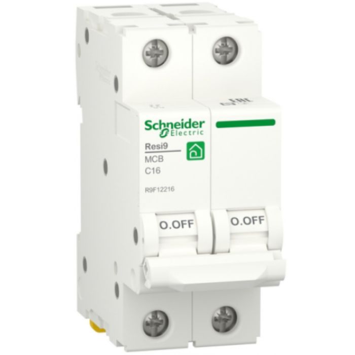 Автоматичний вимикач Schneider Electric Resi9 2P 16A, 6kA, тип C (код: 4.2.158482) — двополюсний автомат, що забезпечує ефективний захист електричних мереж від перевантажень і коротких замикань. Ідеально підходить для однофазних ланцюгів із підвищеним навантаженням або де потрібне повне відключення фази й нуля.