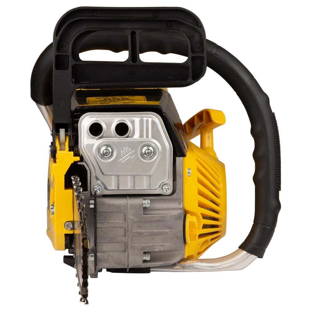 Корпус бензопили із РА пластику забезпечує високу міцність та деформаційну теплостійкість, а також захищає від низьких температур. Автоматичне змащування ланцюга та шини забезпечує безперебійну роботу, а гальмо ланцюга гарантує безпеку у використанні.