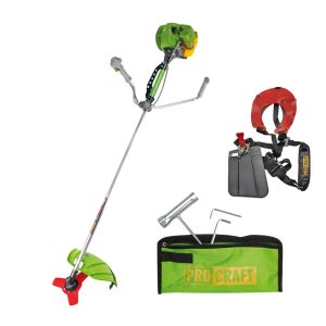 Бензиновий триммер Procraft T4200 рюкзак 2020 New є ідеальним інструментом для обрізки трави та бур'яну на великих ділянках землі. Цей потужний триммер має 4.2 кВт двигун, що забезпечує високу продуктивність. Він відноситься до класу побутових і має форму ручки велосипеда для зручного утримування. Оснащений захисним кожухом, він забезпечує безпеку під час роботи. Загальна вага триммера становить 8 кг, об'єм двигуна складає 52 куб.см, а об'єм паливного бака - 1,2 літра. Триммер має рюкзак для зручності під час роботи, а також вертикальне розташування двигуна для комфортного використання. Цей триммер підходить для використання в домашніх умовах.