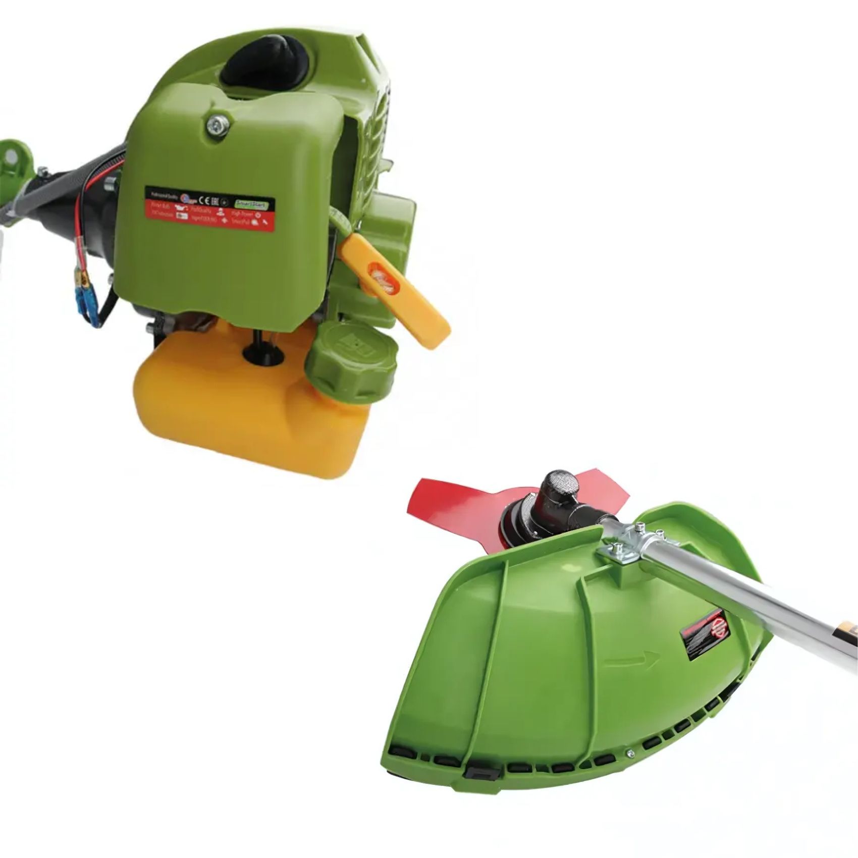 Цей триммер також має зручний рюкзак для перенесення, що додає комфорту під час роботи. Його вертикальне розташування дозволяє зручно використовувати інструмент.