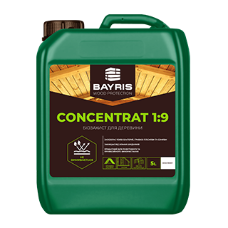 Біозахист для конструкційної деревини Байріс Concentrat 1:9 безбарвний 5 л - це ефективний засіб для захисту дерев'яних конструкцій. Він має глибокого проникнення, що забезпечує надійний захист матеріалу від шкідливих факторів. Цей біозахист призначений як для зовнішніх, так і для внутрішніх робіт. Його витрата складає 4,5 м/л, що дозволяє економити матеріал. Фасування продукту - 5 л.