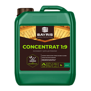 Вид: біозахист Колір-декор: зелений. Основні характеристики :Концентрат для Кострукційної деревини Bayris 1:9 зелений 1 л Бренд: Bayris Захисні властивості: захист від розповсюдження плісняви, біозахист, захист від комах-шкідників Застосування: для внутрішніх та зовнішніх робіт Призначення: для дерев'яних поверхонь, для будівельних конструкцій, для терас Тип поверхні: деревина, деревопохідні матеріали, дерев'яні покриття, віконні рами, двері, хвойні породи деревини, несучі дерев'яні конструкції Основа зв'язуючої речовини: водна Розчинник: вода Колір виробника: зелений Країна-виробник: Україна Відтінок: зелений Витрата: 4,5 кв.м/л. Розмір та вага Об'єм: 5 л Додаткова інформація Інструмент для нанесення: пензель, автоклав, валик, занурення, пульверизатор...
