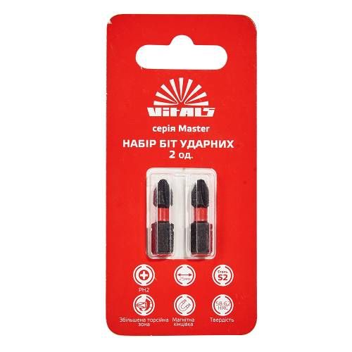 Біти ударні S2 PH2х25 мм - це високоякісні біти, призначені для використання в будівельних та ремонтних роботах. Виготовлені зі сталі S2, вони мають високу міцність і довговічність. Завдяки розміру 25 мм, ці біти підходять для роботи зі зручними довгими гвинтами. Вони також мають тип PH2, що дозволяє ефективно затягувати гвинти з крестоподібною головкою.