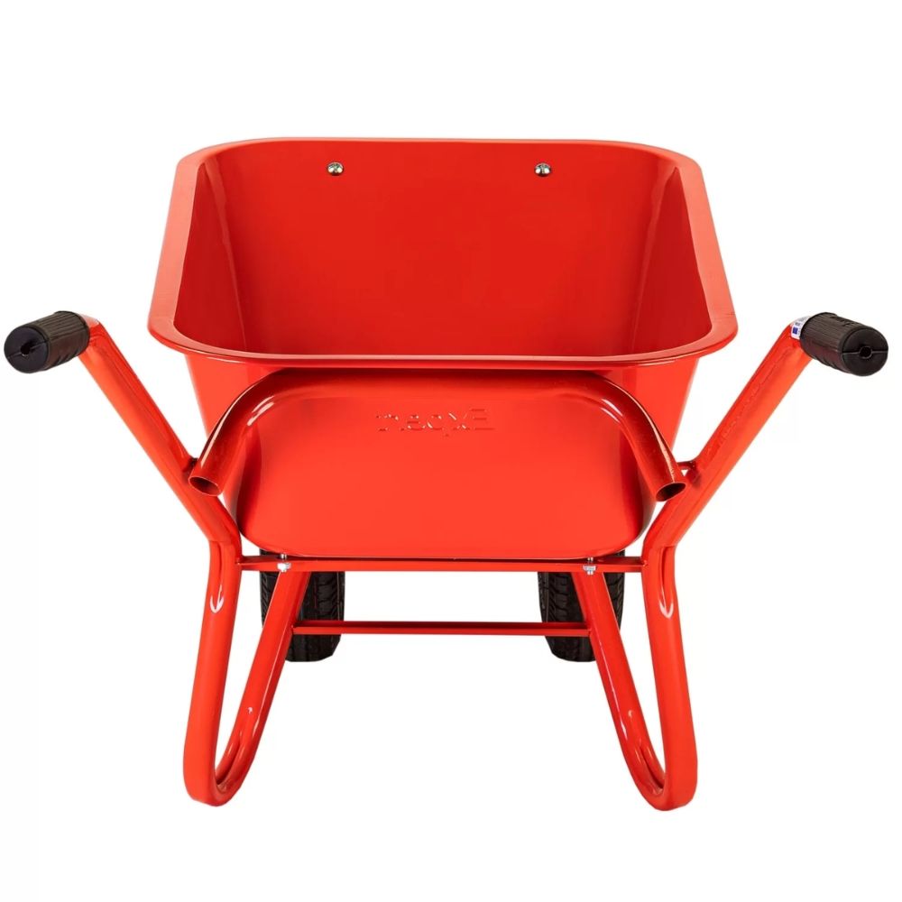 Будівельна двоколісна тачка КВІТКА PRO Formula 1 Expert (110-4066) — надійний інструмент для транспортування сипучих і будівельних матеріалів. Має місткий кузов на 100 літрів і вантажопідйомність до 180 кг, що робить її оптимальним вибором для професійного та побутового використання.