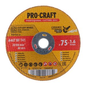 Відрізний диск Procraft YCD75x1.6 призначений для швидкого та чистого різання металу, нержавіючої сталі та сплавів. Виготовлений із високоякісного електрокорунду на бакелітовій основі, диск забезпечує точний різ без перегріву матеріалу. Підходить для роботи з мінішліфувальними машинами.