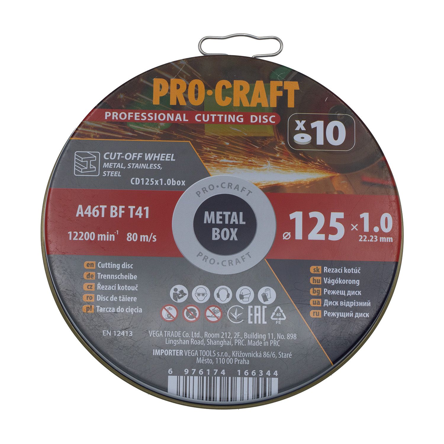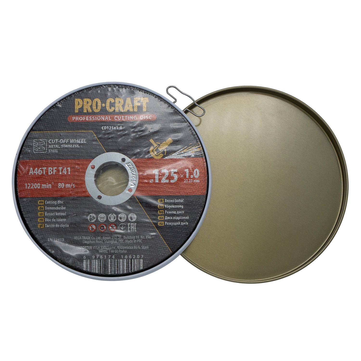 Відрізний диск Procraft CD125x1.0b 125×1,0×22,2 мм (10 шт/уп) — надійний абразивний інструмент для точного різання металу, пластику та інших твердих матеріалів. Завдяки товщині 1,0 мм забезпечує мінімальну деформацію й чистий різ, підходить для більшості КШМ.
