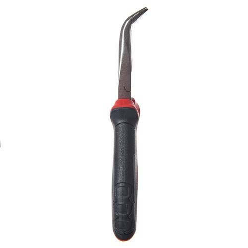 Довгогубці вигнуті 160 мм Vitals Master мають кілька переваг:1. Зручна двокомпонентна прогумована ручка дозволяє тримати інструмент з комфортом і надійністю.2. Вигнуті губки допомагають дістатися до труднодоступних місць і забезпечують точність роботи.3. Губки виготовлені зі сталі Cr-V, що забезпечує їх міцність і довговічність.4. Антикорозійне покриття губок забезпечує їх захист від корозії і тривалий термін експлуатації.5. Загальна довжина інструменту - 160 мм, що дозволяє зручно працювати навіть в узких просторах.