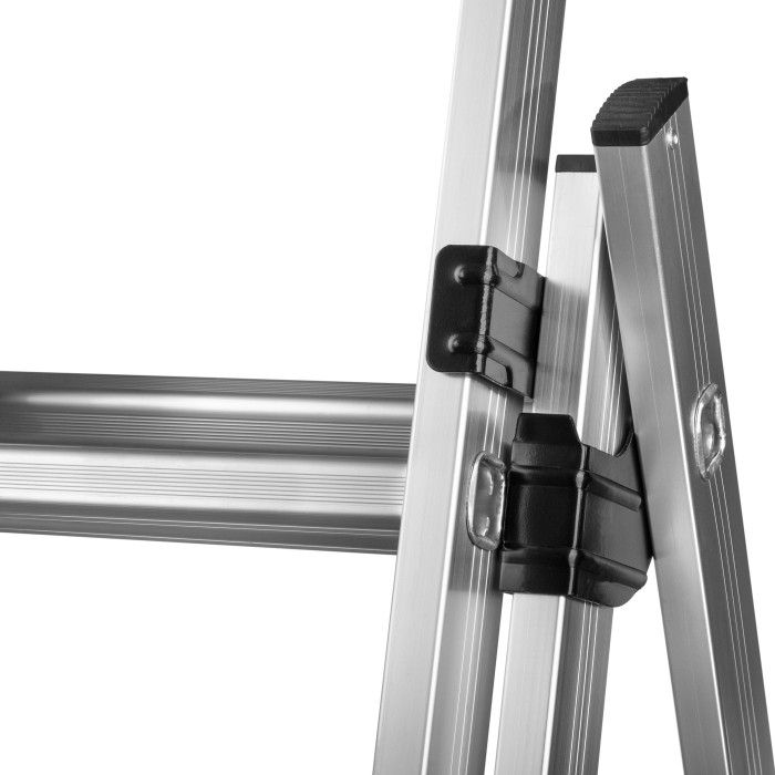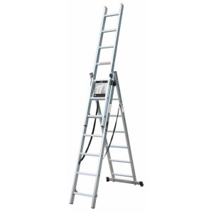 Алюмінієва драбина LADDER STANDART 310 — універсальний інструмент для виконання робіт на висоті вдома, на дачі чи будівельному майданчику. Завдяки трьом секціям по 10 сходинок кожна, драбина може використовуватися як приставна, розкладна або комбінована, забезпечуючи багатофункціональність та зручність у роботі.