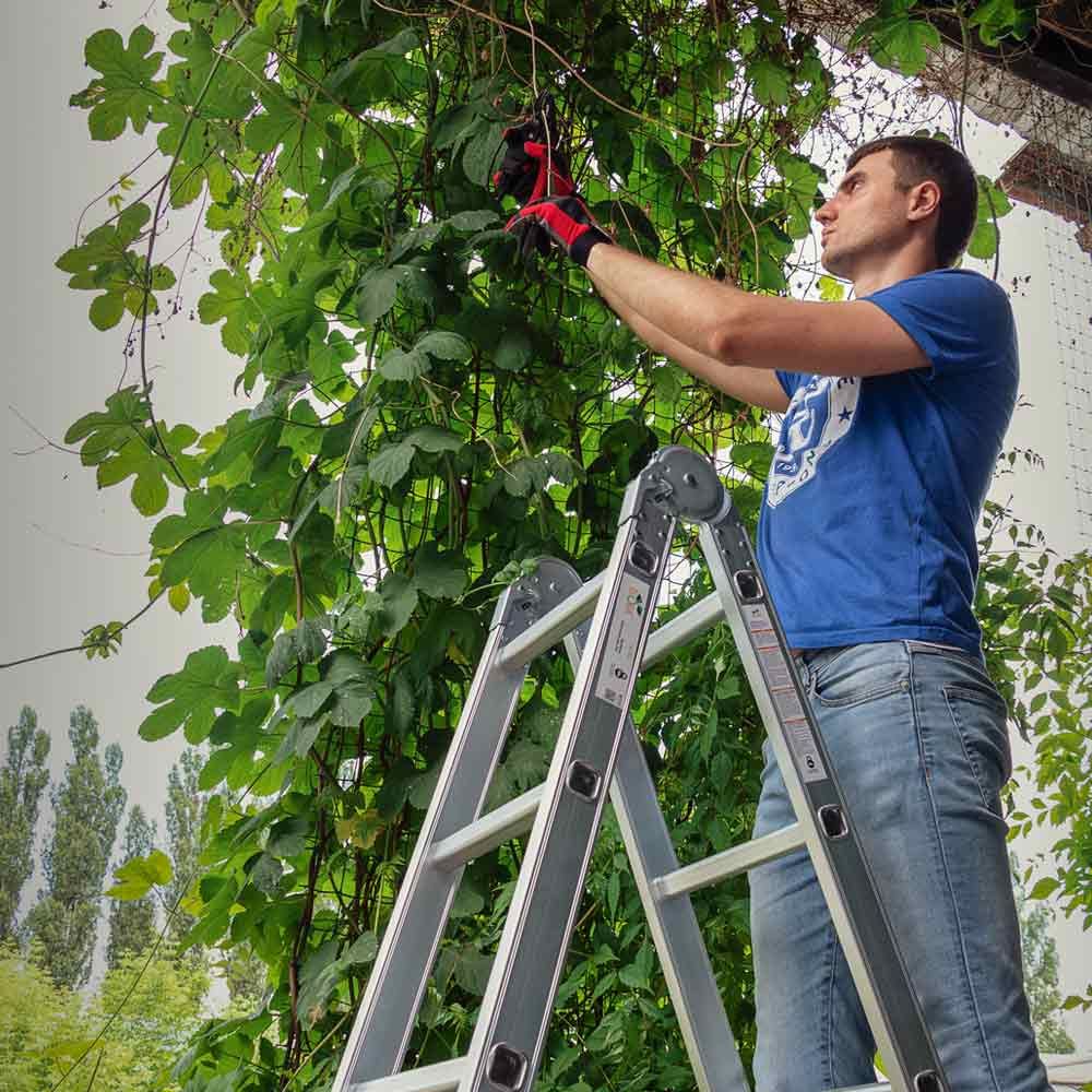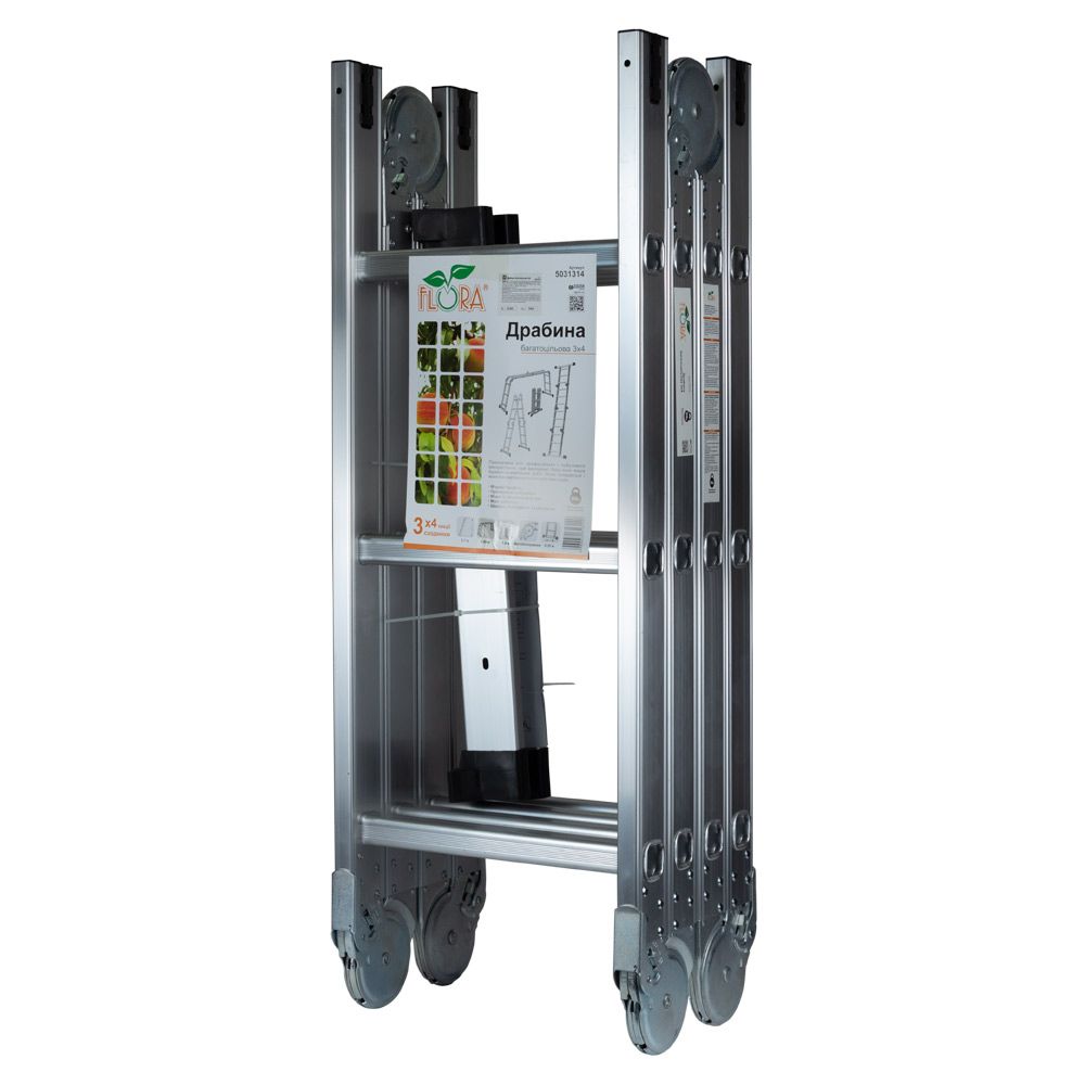 Драбина багатоцільова 43 сходинок 3.56 м FLORA (5031314) призначена для професійного і побутового використання при виконанні будь-яких видів будівельно-монтажних робіт. Легко складається і може використовуватися як приставні сходи.