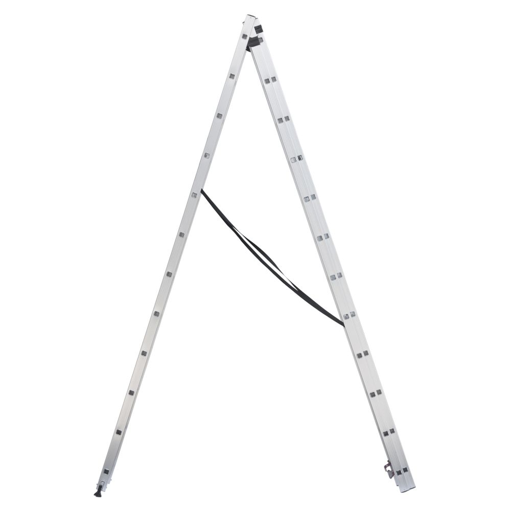 Драбина розкладна універсальна SIGMA з 12 сходинками і максимальною висотою 7,89 м стане надійним помічником як у будівельних чи ремонтних роботах, так і в садівництві. Конструкція дозволяє використовувати її як приставну, висувну або класичну стрем’янку, забезпечуючи комфорт та безпеку під час будь-яких завдань. Виготовлена з міцного алюмінію, вона витримує навантаження до 150 кг, має широкий упор для стійкості, рифлені нековзні сходинки та захисні ніжки. Система самофіксуючих гачків та міцні ремені запобігають довільному розсуванню секцій, а продумана конструкція забезпечує зручне складання й транспортування. У складеному вигляді висота становить 3,3 м, у вигляді стрем’янки – 3,2 м, а у формі «А» – 5,35 м, що робить її універсальним рішенням для роботи на різних висотах.