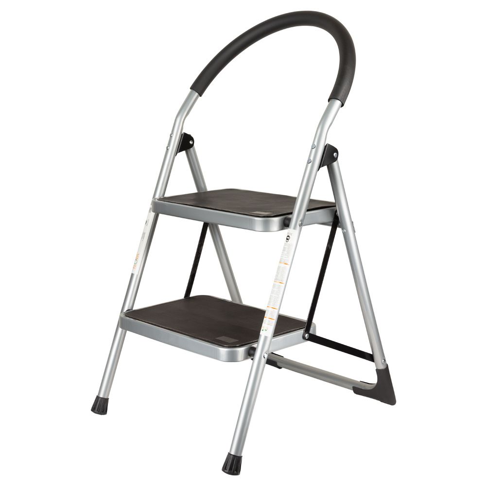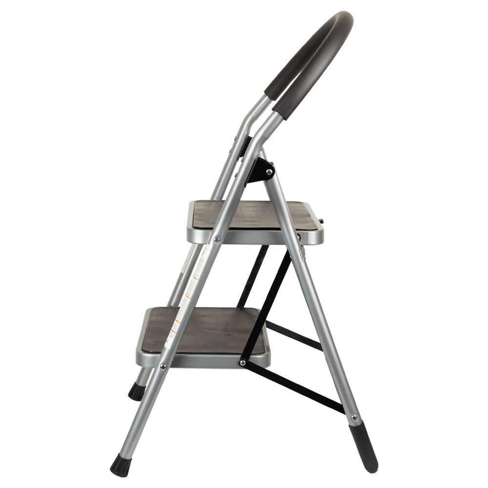 Драбина сталева 2 ступінчаста 1.00м FLORA (5035314) призначена для внутрішніх і зовнішніх будівельних робіт, збору врожаю в саду, побутових потреб.