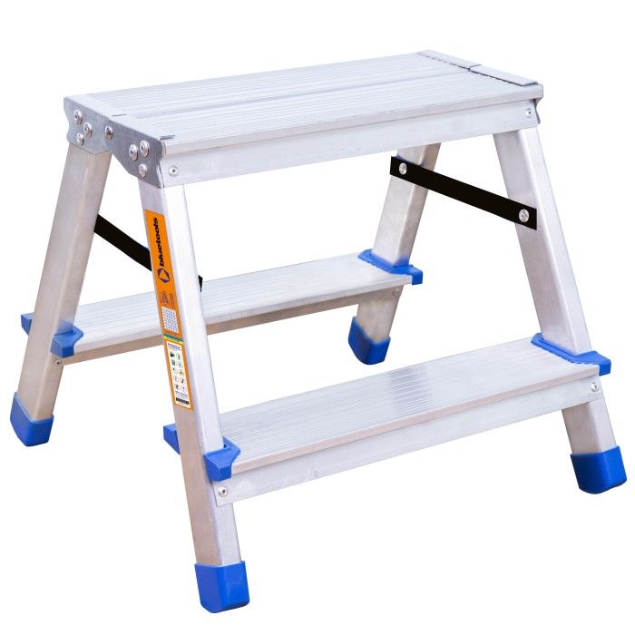 Двостороння драбина-стрем’янка BLUETOOLS Expert 2×2 сходинки — легка та міцна модель для побутового й професійного використання. Завдяки конструкції з алюмінію та можливості підйому з обох боків забезпечує зручність і стабільність під час роботи.