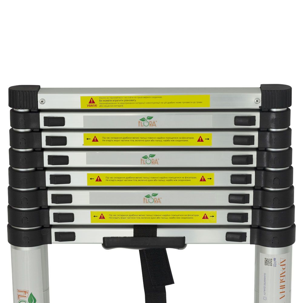 Драбина телескопічна 11 сходинок 3.2м FLORA (5033614) - це розсувна мобільна конструкція, що складається із секцій, які з’єднуються між собою фіксаторами. Застосовується як приставна драбина. Це зручний інструмент для оздоблювачів, монтажників, будівельників, під час прокладання електричних кабелів.