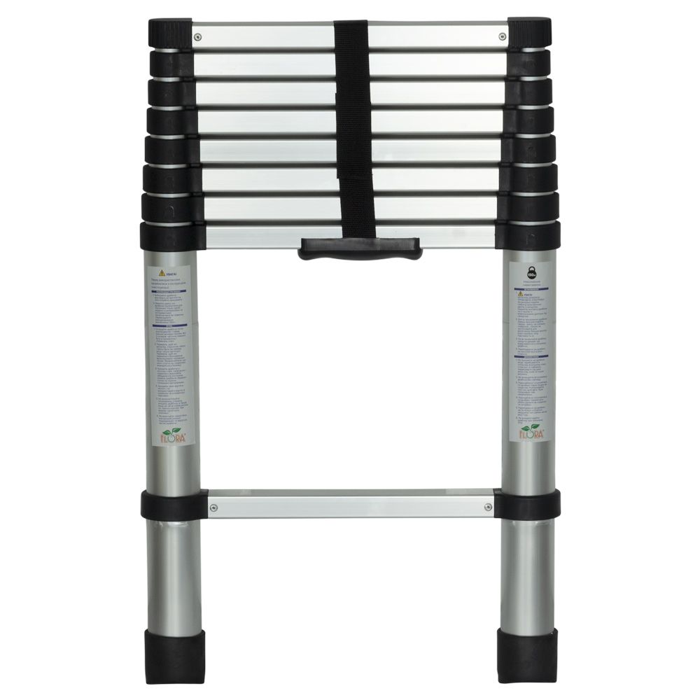 Драбина телескопічна 9 сходинок 2.6м FLORA (5033594) - це розсувна мобільна конструкція, що складається із секцій, які з’єднуються між собою фіксаторами. Застосовується як приставна драбина. Це зручний інструмент для оздоблювачів, монтажників, будівельників, під час прокладання електричних кабелів.