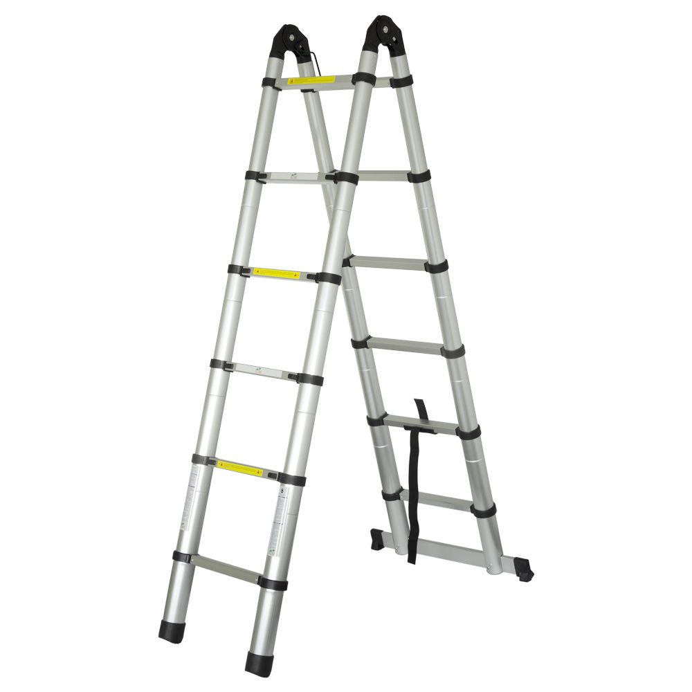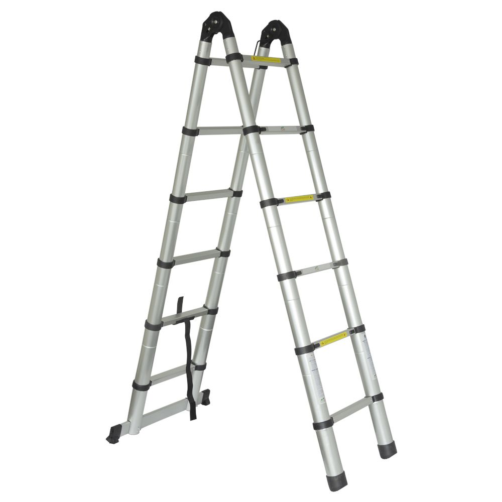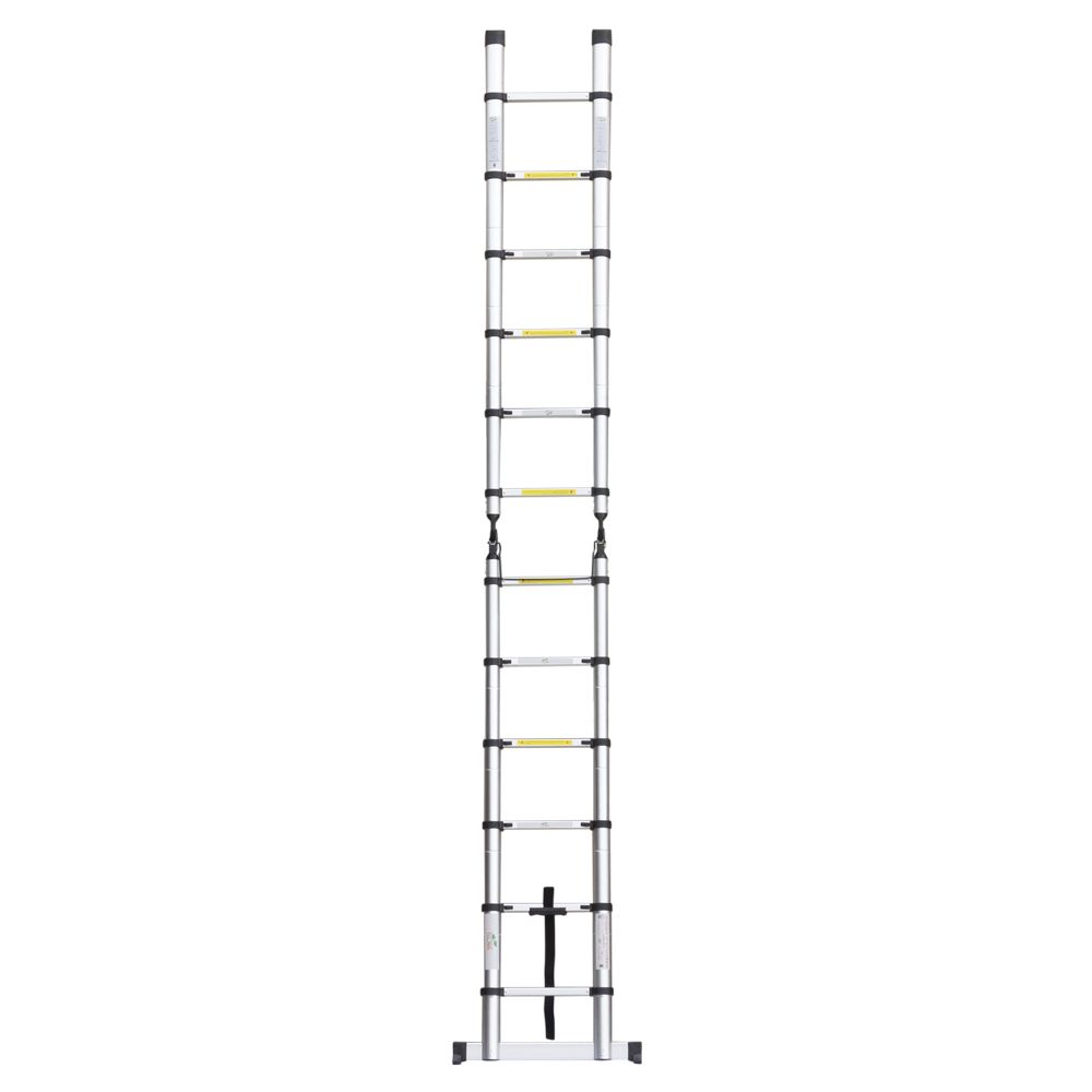 Драбина телескопічна універсальна 12 сходинок 3.8м SIGMA (5033414) - це розсувна мобільна конструкція, що складається із секцій, які з’єднуються між собою фіксаторами і шарнірами. Форма конструкції може бути у вигляді приставної драбини або стрем’янки.