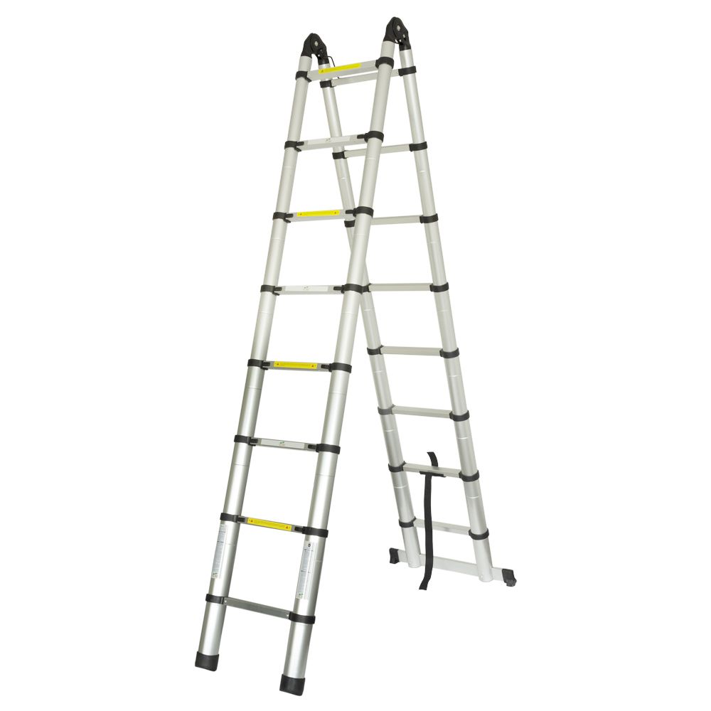 Драбина телескопічна універсальна 16 сходинок 5.0м SIGMA (5033434) - це розсувна мобільна конструкція, що складається із секцій, які з’єднуються між собою фіксаторами і шарнірами. Форма конструкції може бути у вигляді приставної драбини або стрем’янки.