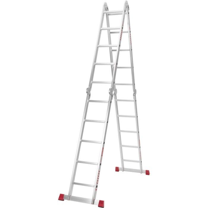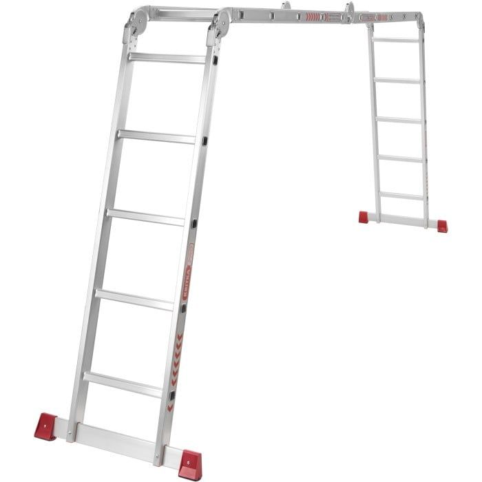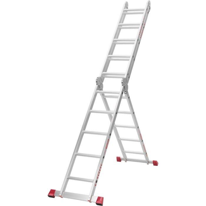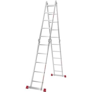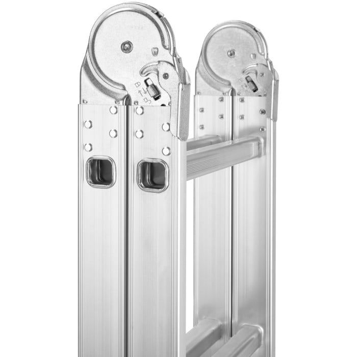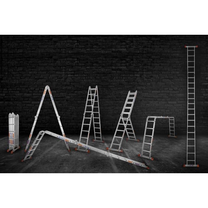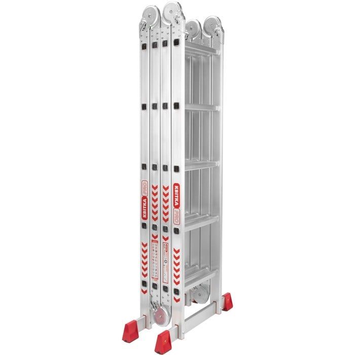 Драбина-трансформер Квітка PRO HD 4×5 — професійна алюмінієва модель, створена для інтенсивних будівельних і монтажних робіт. Конструкція дозволяє використовувати її як стрем’янку, поміст або приставну драбину. Завдяки міцному профілю, надійним шарнірам і антиковзним опорам забезпечує безпечну роботу на висоті.