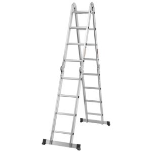 Універсальна 4-секційна драбина-трансформер з платформою. Може використовуватись як приставна драбина, стрем’янка або робочий поміст. Компактно складається до висоти близько 1,01 м, що зручно для транспортування та зберігання.