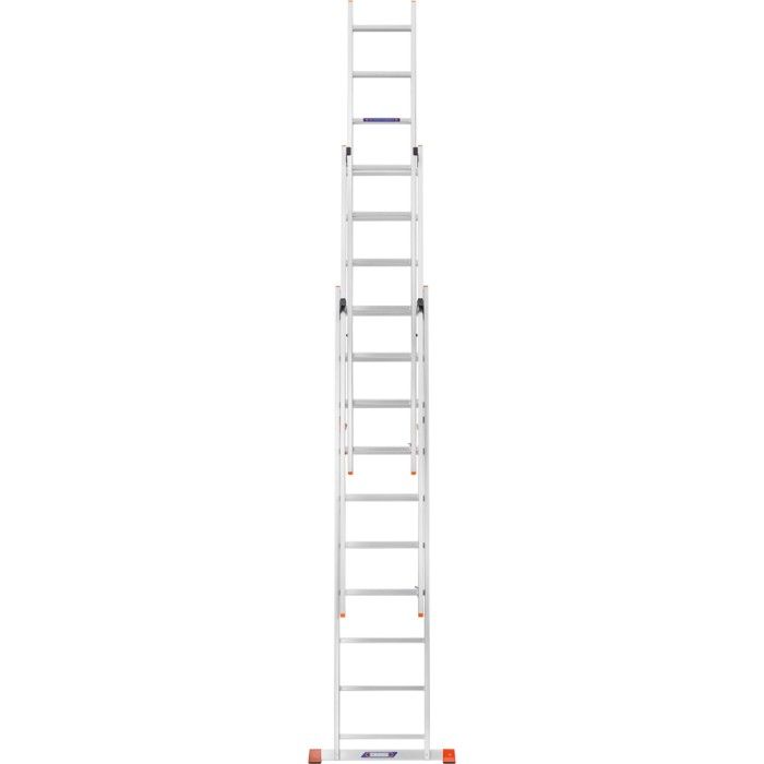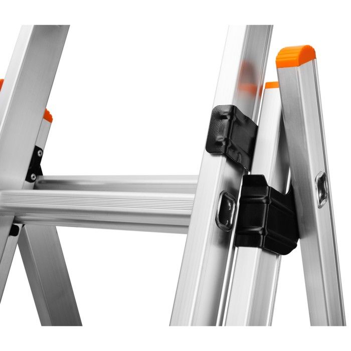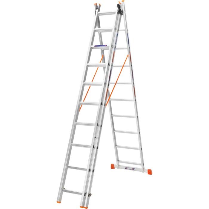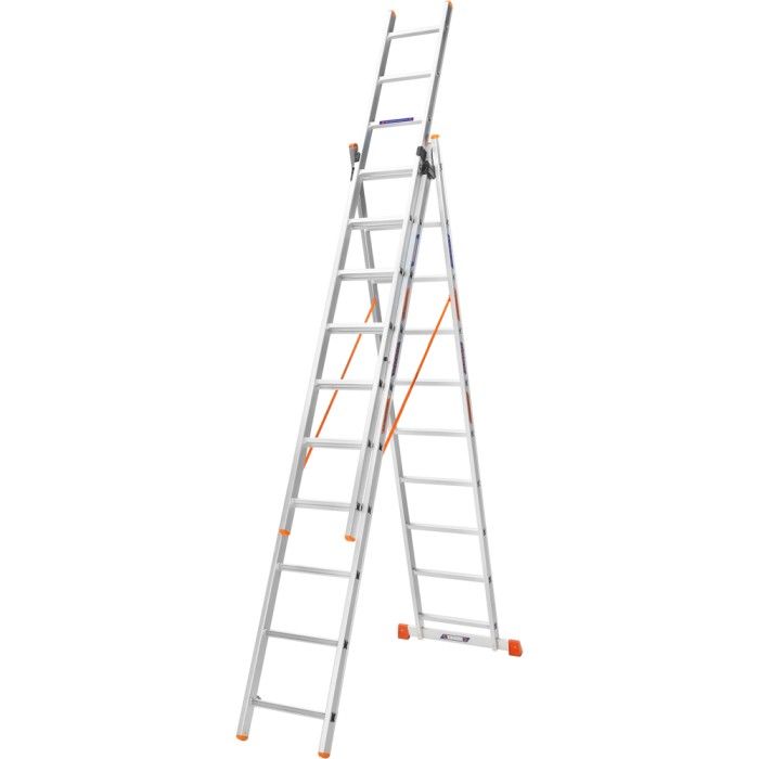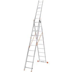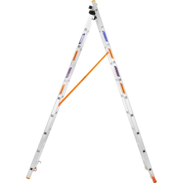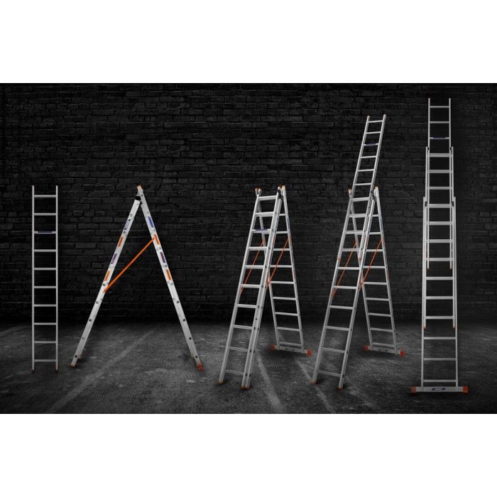 Універсальна алюмінієва драбина 310 ступенів, макс. 150 кг — багатофункціональна конструкція для професійного та побутового використання. Може використовуватись у трьох положеннях: як приставна драбина, драбина у формі «» та драбина у формі «/\».