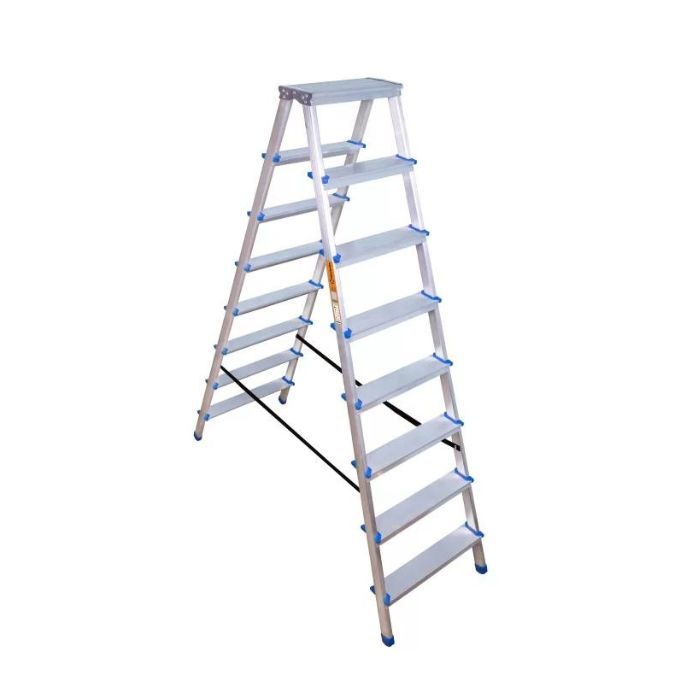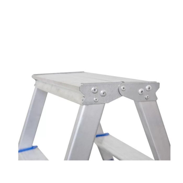 Двостороння драбина-стрем'янка BLUETOOLS Expert із восьмома сходинками - надійний помічник у ваших будинках та гаражах. Вона має зручну конструкцію з антиковзаючим покриттям на сходинках, яка забезпечує безпеку під час користування. Дві стійкі опори забезпечують стабільність під час роботи на висоті. По одній фіксаційній вантажності в кожному шарнірі, що гарантує надійність конструкції. Завдяки компактним розмірам драбина зручно зберігається після використання. Придбайте BLUETOOLS Expert і зробіть своє життя комфортнішим!