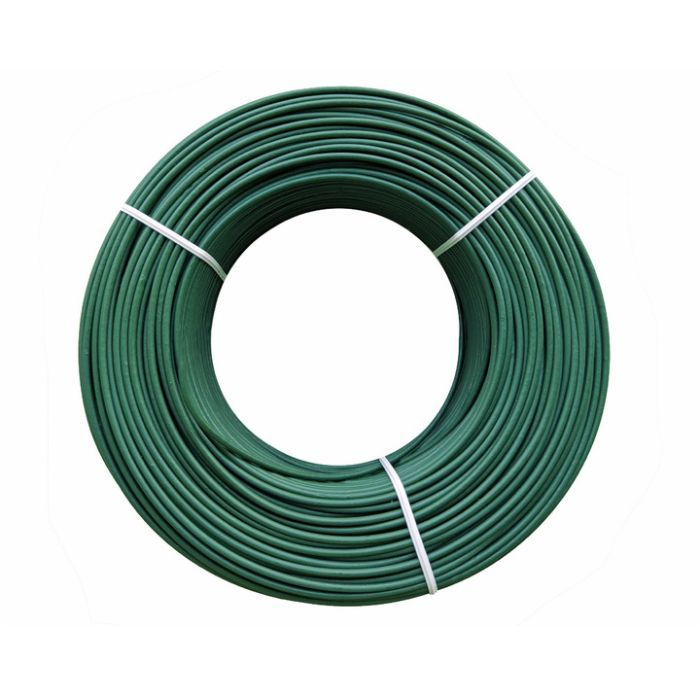 Моток дроту металевий, вкритий ПП покриттям – ідеальний варіант для фіксації огорожі з сітки рабиці ПВХ, її натягування, запобігання провисанню, і відповідно збільшення терміну експлуатації такого паркану.