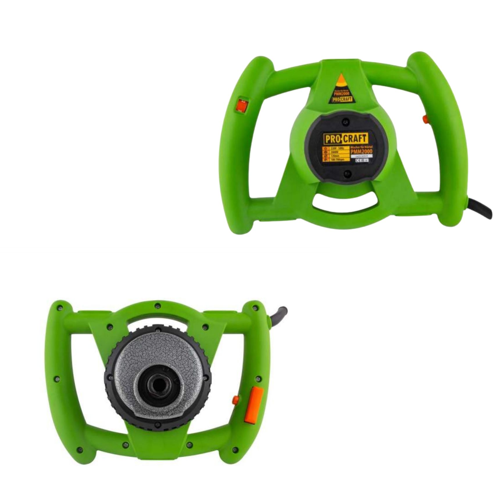 Міксер будівельний PММ2000 Procraft ідеально підходить для змішування різних типів будівельних матеріалів, таких як цемент, штукатурка, фарби тощо. Він може використовуватися як в домашніх умовах, так і на будівельних майданчиках.