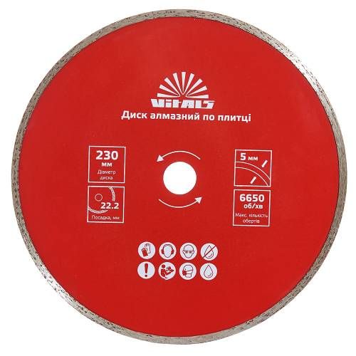 Цей алмазний диск має ще кілька унікальних властивостей та переваг. Він здатний ефективно працювати на великій швидкості, витримує високі навантаження та дозволяє забезпечити точний та чистий розріз, не пошкоджуючи матеріал. Крім того, диск має довгий термін служби та міцну структуру, яка забезпечує стійкість та надійність при роботі. Всі ці особливості роблять диск алмазний Vitals незамінним інструментом в будівництві та ремонті.