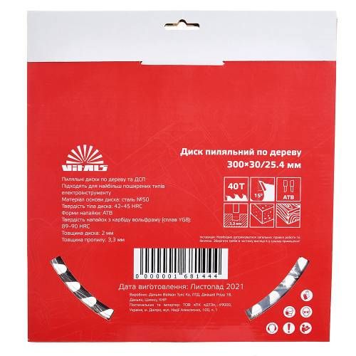 Інші унікальні властивості та переваги диска пиляльного Vitals по дереву 300x30/25.4, ATB 40:- Висока міцність та стабільність- Низький рівень шуму та вібрації під час роботи- Легка заміна інструменту- Надійність та безпека- Висока продуктивність та ефективність роботи- Стабільне різання без засмічення- Не потребує додаткового підшліфовування різів- Різання без вищерблення та відраховувань