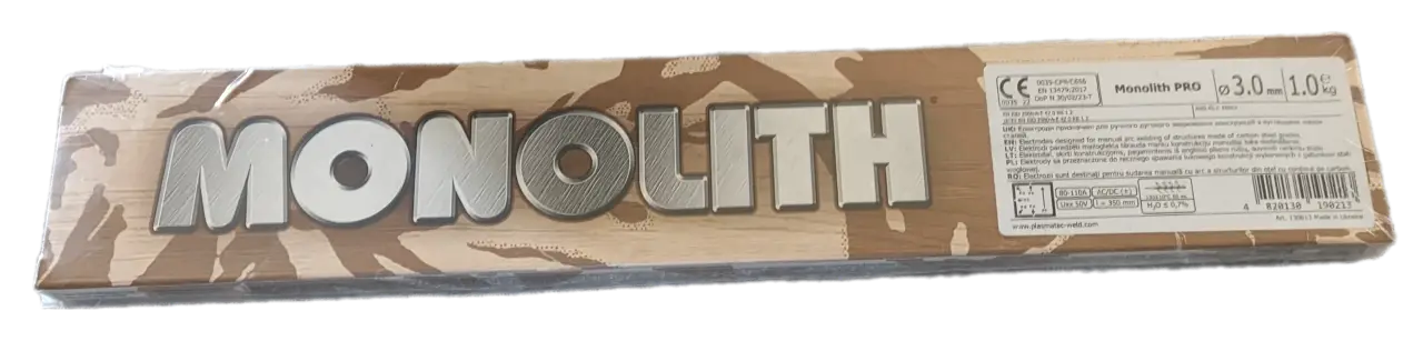 Електроди Monolith PRO TM MONOLITH д 3 мм: уп 1 кг - це високоякісні електроди з монолітним сердечником, які використовуються для зварювання різних металевих конструкцій. Вони мають діаметр 3 мм і упаковані у пачки по 1 кг. Ці електроди володіють великою електричною провідністю, завдяки чому забезпечують стабільну і високу якість зварювання. Вони легко розплавляються під впливом потоку струму і мають високий рівень міцності і надійності з'єднання. Крім того, вони мають довгий термін експлуатації і не вимагають частої заміни. Ці електроди рекомендовані для використання в промислових умовах і відповідають всім вимогам безпеки.