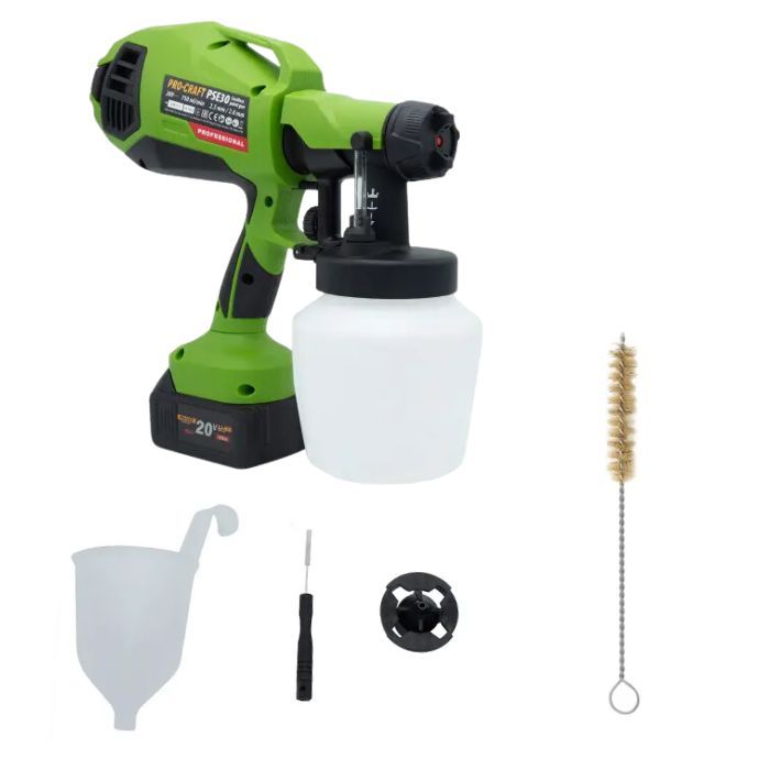 Procraft PSE20 — це зручний і продуктивний акумуляторний фарбопульт, розроблений для швидкого та якісного нанесення лакофарбових матеріалів на різні поверхні. Ідеально підходить як для будівельних, так і для оздоблювальних робіт у професійному та побутовому сегменті.