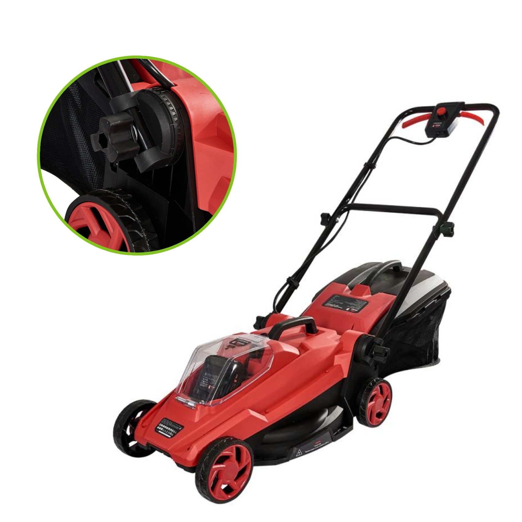 Модель оснащена роторним дисковим ножем із двома лезами, який ефективно скошує траву, частково її подрібнюючи. Газонокосарка працює у двох режимах: зі збором трави у контейнер або з викидом зеленої маси на газон.