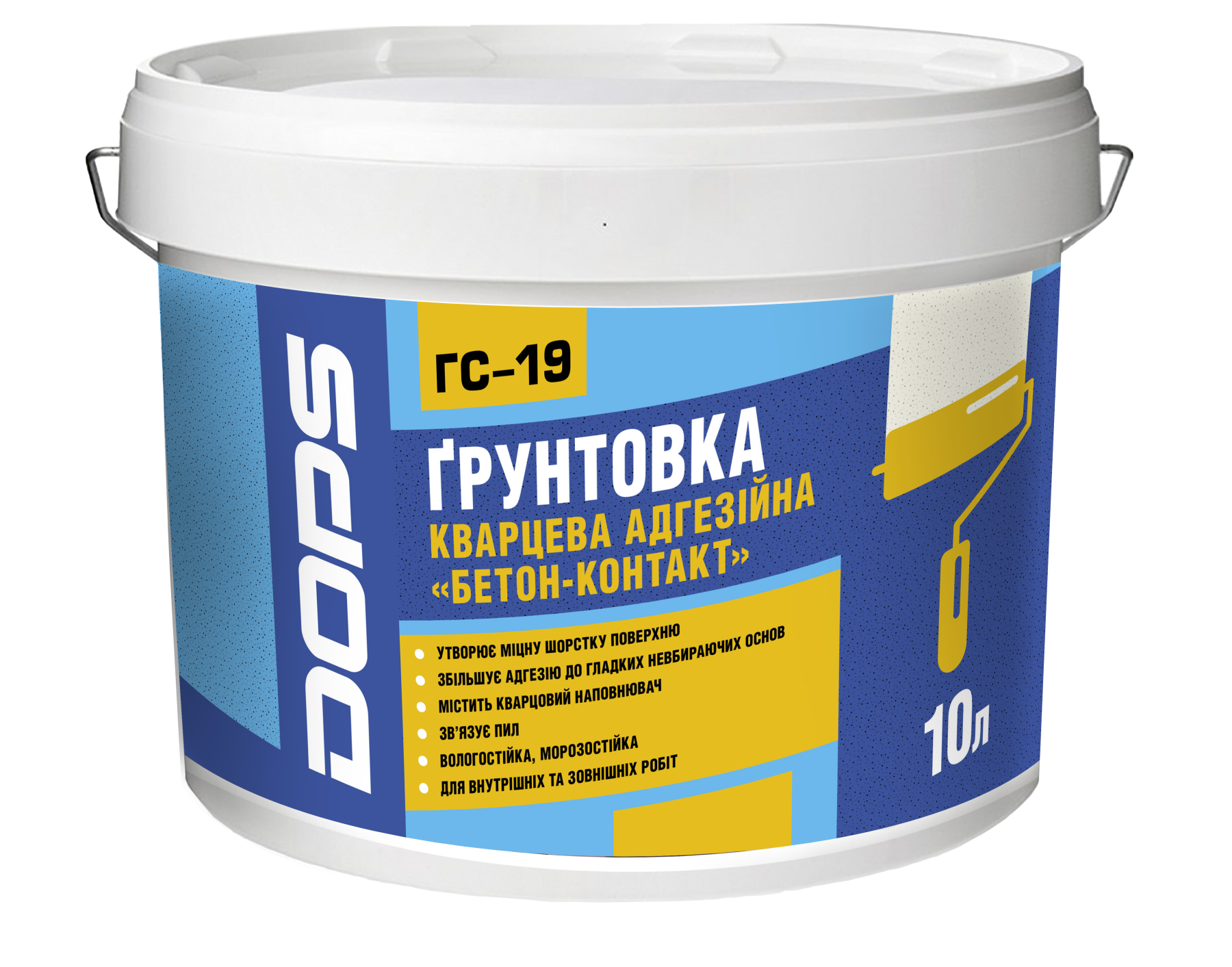 Ґрунтовка кварцова адгезіонна «БЕТОН-КОНТАКТ» призначена для попередньої обробки щільних гладких основ з низьким водопоглинанням перед подальшим виконанням оздоблювальних робот. Створює міцну шорстку поверхню, збільшує зчеплення з наступними шарами матеріалу. Морозостійка, вологостійка після висихання, для внутрішніх та зовнішніх робіт.