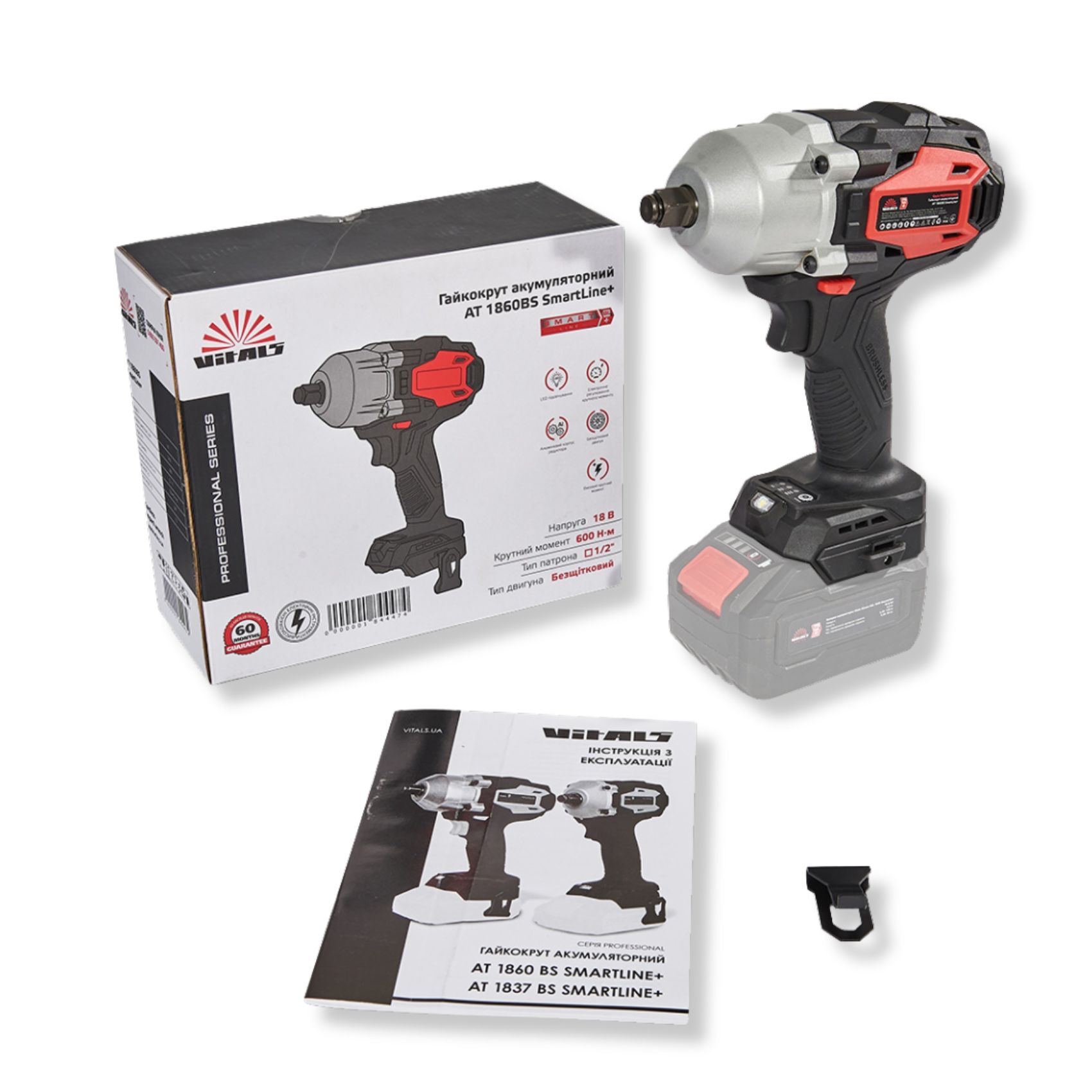 Гайкокрут акумуляторний Vitals Professional AT 1860 BS SmartLine+ — це найпотужніша модель у лінійці гайкокрутів серії SmartLine+. Він призначений для виконання найвибагливіших завдань із кріплення та відкручування гайок, забезпечуючи високий крутний момент аж до 600 Нм.